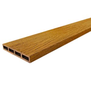 WPC fencing board with wood grain impression in a variety of colors and 13cm wide. The board is double-sided smooth without groove. The Material does not require any maintenance and it is highly resistant to the sun, dust and water. It consists of 65% wood and 35% synthetic resin. Its placement is done on uprights in a variety of ways. The distance of the uprights should be no more than 80 cm.